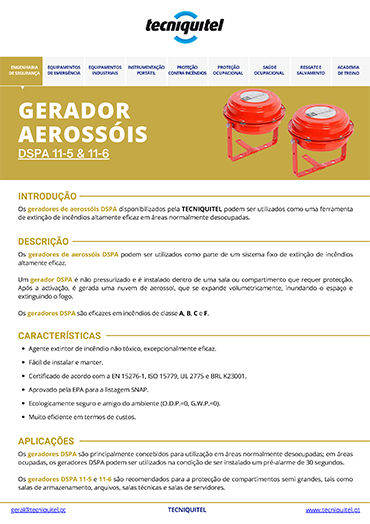CARACTERÍSTICAS DOS GERADORES DE AEROSSÓIS DSPA 11-5 & 11-6