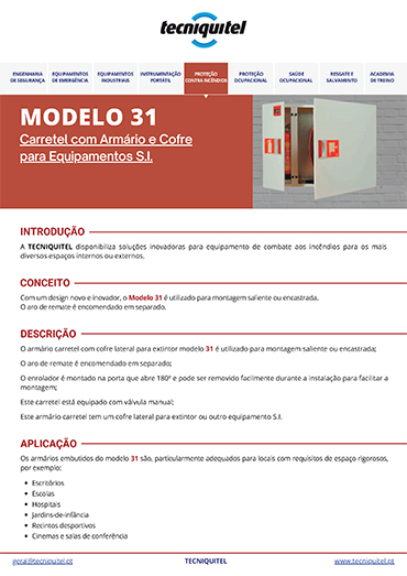 O Carretel com Armário e Cofre para Equip. S.I. Modelo 31 não só está testado e aprovado, com marcação CE, como também está conforme EN 671-1.