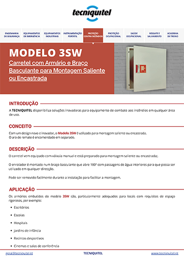 O carretel com armário Modelo 3SW pode ser instalado de forma saliente ou encastrado na parede. O aro de remate é encomendado em separado.