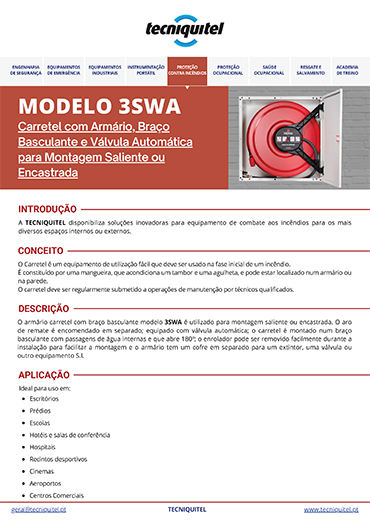 O carretel com armário modelo 3SWA está testado e aprovado, com marcação CE de acordo com NS-EN671-1. O carretel deve ser regularmente submetido a operações de manutenção por técnicos qualificados.