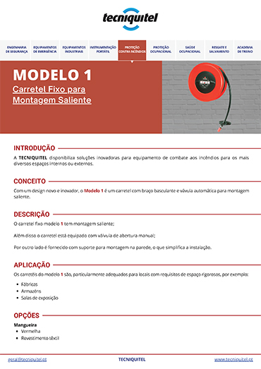 O carretel fixo Modelo 1 está testado e aprovado, com marcação CE de acordo com a norma EN671-1.