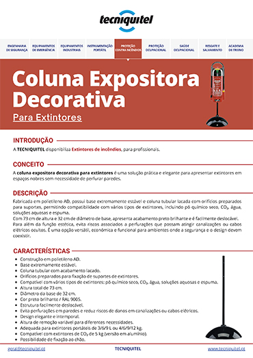 A coluna expositora decorativa para extintores é uma solução prática e elegante para apresentar extintores em espaços nobres sem necessidade de perfurar paredes.