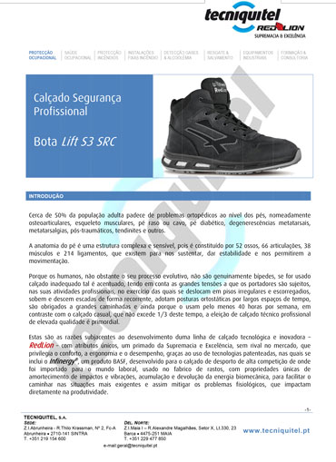 Esta bota de segurança S3 SRC CI ESD LIFT possui forro interior de estrutura alveolar Wing tex com túnel de ar que garante uma transpirabilidade muito elevada.