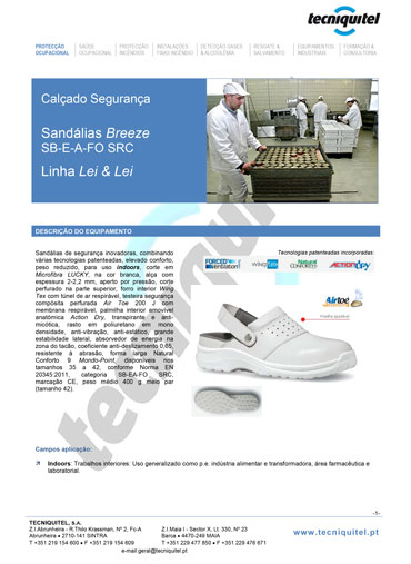 Esta sandália de segurança SB-E-A-FO SRC BREEZE GRIP inovadora está classificada como calçado de proteção da classe SB-E-A-FO SRC.