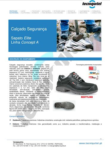 Este sapato de segurança S3 SRC ELITE inovador está classificado como calçado de segurança da classe S3 SRC. Além disso, combina várias tecnologias patenteadas. Tem elevado conforto, peso reduzido e está adequado para uso indoors e outdoors.