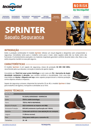 Sapato de Segurança S3 SRC ESD WRU SPRINTER