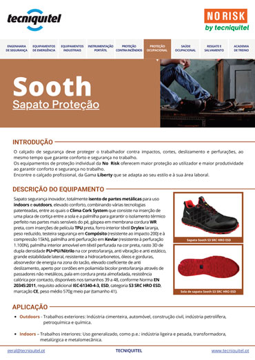 O sapato de segurança S3 SRC HRO ESD SOOTH é ideal para uso indoors e outdoors, isento de partes metálicas e com foco no conforto.