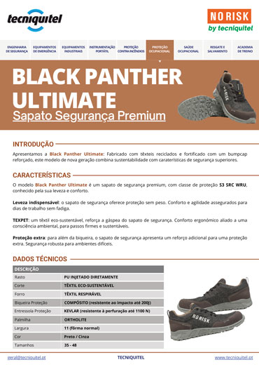 Com o seu design inovador e materiais de alta qualidade, a Black Panther Ultimate tornou-se uma referência no mercado do calçado de segurança.