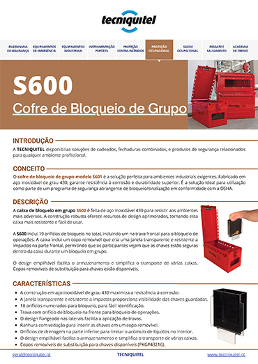 O cofre de bloqueio de grupo modelo S600 é a escolha ideal para ambientes industriais exigentes. Fabricado em aço inoxidável de grau 430, garante resistência à corrosão e durabilidade superior.