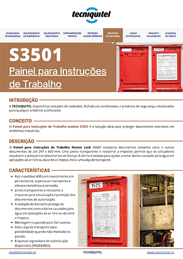 Além disso, possui uma alça de transporte que facilita a mobilidade e a utilização em diferentes áreas. O painel para instruções de trabalho modelo S3501 combina resistência, funcionalidade e segurança para operações críticas.