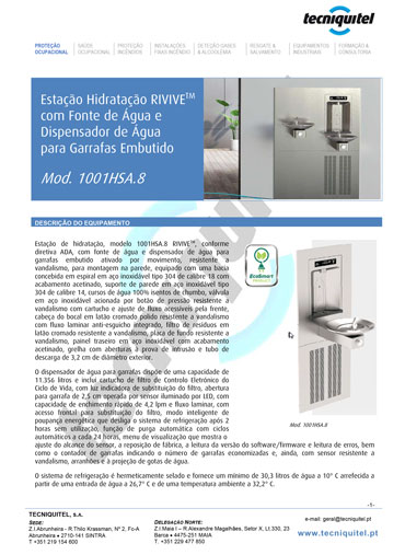 DESTAQUES ESTAÇÃO DE HIDRATAÇÃO RIVIVE™ MODELO 1001HSA.8