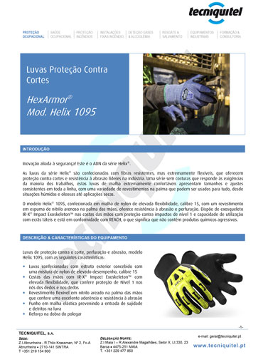 A HexArmor Helix® 1095 combina durabilidade, alto desempenho e proteção contra esmagamentos e entalamentos.