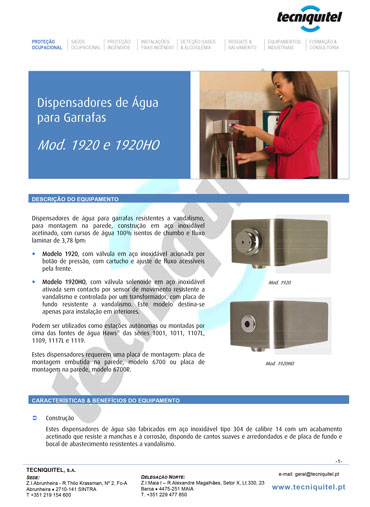 DESTAQUES DOS DISPENSADORES DE ÁGUA PARA GARRAFAS MODELO 1920 E 1920HO