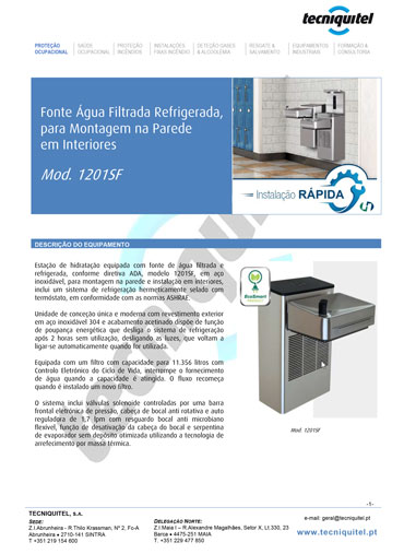 A fonte de água filtrada refrigerada modelo 1201SF é ideal para escolas, edifícios de escritórios, centros comerciais e outros ambientes interiores onde exista a necessidade de uma fonte de água refrigerada.