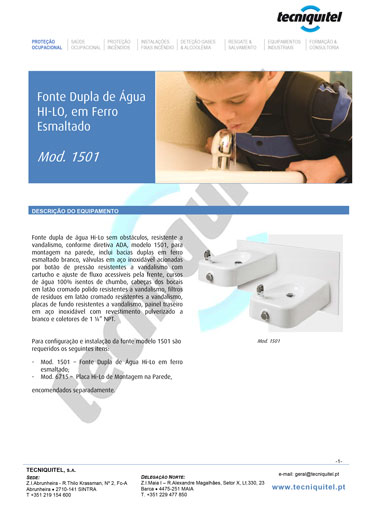 A fonte de água modelo 15101 possui cursos de água 100% isentos de chumbo, cabeças dos bocais em latão cromado polido resistentes a vandalismo.