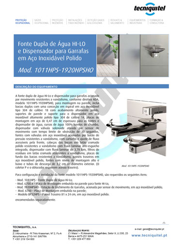A fonte dupla e dispensador de água para garrafas modelo 1011HPS-1920HPSHO é apenas para instalação em interiores.