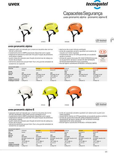 O capacete de segurança Uvex pronamic alpine E é multi-normalizado e cumpre os requisitos da norma EN 397, EN 50365 e EN 12492 (exceto ventilação 4.1.4).