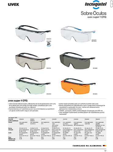 Proteção IR de acordo com a norma EN 169 com reconhecimento perfeito das cores de acordo com a norma EN 172. Os óculos de soldadura Uvex super f OTG têm proteção UV400 – 100% contra radiação UV perigosa até 400 nm.