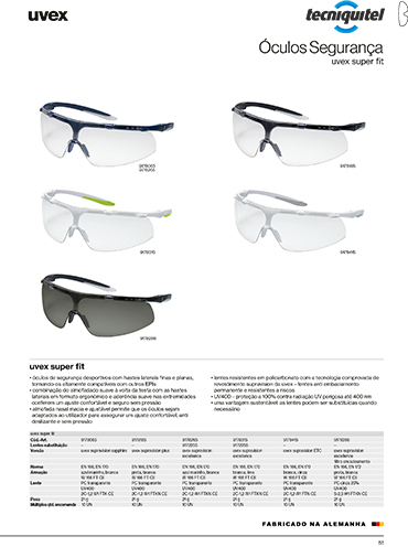 Os óculos de segurança uvex super fit são desportivos com hastes laterais finas e planas, tornando-os altamente compatíveis com outros EPIs.