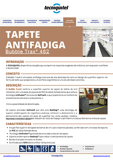 O Tapete Antifadiga Bubble Trax® 482 foi desenvolvido para oferecer máximo conforto ergonómico e durabilidade em ambientes industriais exigentes.