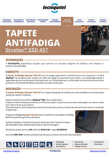 O tapete antifadiga Skystep™ ESD 457 é um tapete dissipador de estática que está concebido em borracha para postos de trabalho individuais.