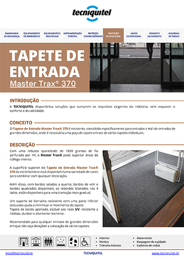 O tapete de entrada Master Trax® 370 é resistente, concebido especificamente para entradas e Hall de entradas de grandes dimensões, onde é necessária uma peça de tapete em vez de vários tapetes individuais.