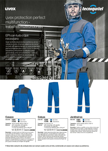 EPI com tudo o que necessário – Quer se trate de produtos químicos, arcos voltaicos, calor, chamas, salpicos de metal ou tudo ao mesmo tempo, a uvex protection perfect multifunction cobre todos os riscos industriais. Descrever esta coleção como generalista seria um eufemismo – com as suas inserções elásticas, as peças de vestuário movem-se com o corpo, protegendo tudo.