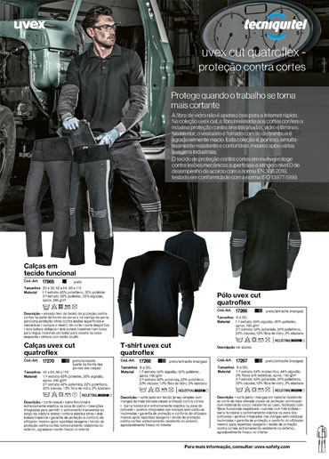 Calça uvex cut quatroflex concebida com tecido contra cortes extremamente resistente no exterior e agradavelmente fresca no interior.