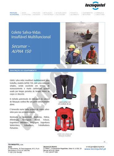 O colete salva-vidas ALPHA 150 é um equipamento insuflável multifuncional, ideal para trabalhos profissionais em ambientes aquáticos exigentes. Destaca-se pelo design ergonómico, conforto prolongado e perfil discreto, permitindo grande liberdade de movimentos.