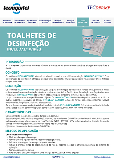 CARACTERÍSTICAS DOS TOALHETES DE DESINFEÇÃO INCLUDAL WIPES