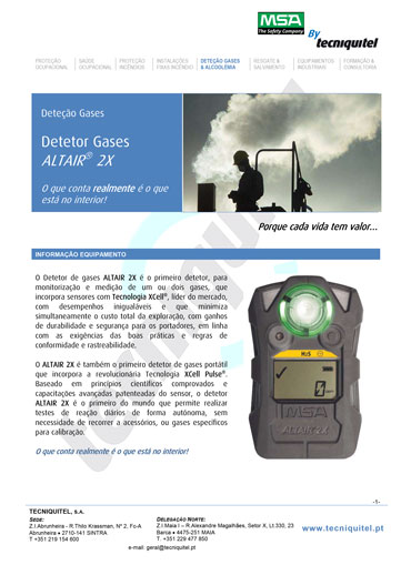 Tal como todos os outros detetores da MSA o ALTAIR 2X é extremamente robusto e construído para lidar com as condições mais agrestes em que deva trabalhar.