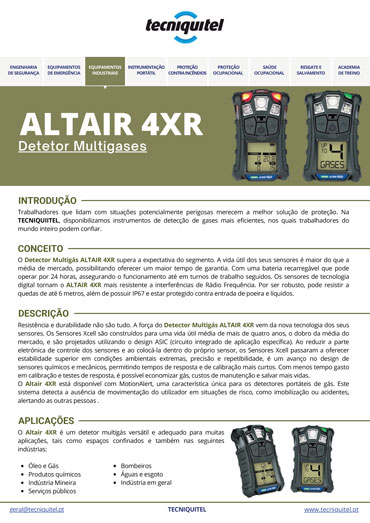 APLICAÇÕES DETETOR MULTIGASES ALTAIR 4XR