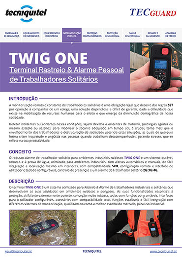 O Terminal Rastreio e Alarme Pessoal de Trabalhadores Solitários Twig One é um sistema desenvolvido para atividades em ambientes ruidosos e perigosos.