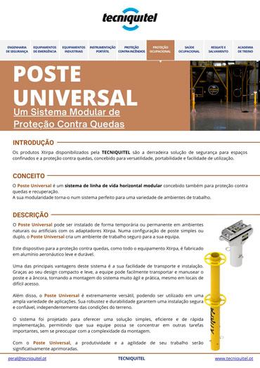 Com o Poste Universal, a produtividade e a agilidade de seu trabalho serão significativamente aprimoradas.