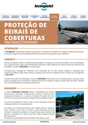 O sistema Kee Guard Foldshield oferece a flexibilidade dos sistemas convencionais, permitindo comprimentos contínuos, extremos fixos, mudanças de direção, etc., ou pode ser montado em secções com 6 m e retornos “D”, para permitir que seja rebatido de forma rápida e simples.