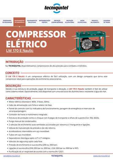 Com excelente desempenho, o compressor Elétrico LW 170 E Nautic destaca-se como solução confiável para profissionais e entusiastas que valorizam qualidade e resistência.