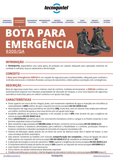 A Bota para Bombeiro 9300/GA é um equipamento de segurança de alto desempenho, desenvolvido para oferecer máxima proteção em situações de emergência.
