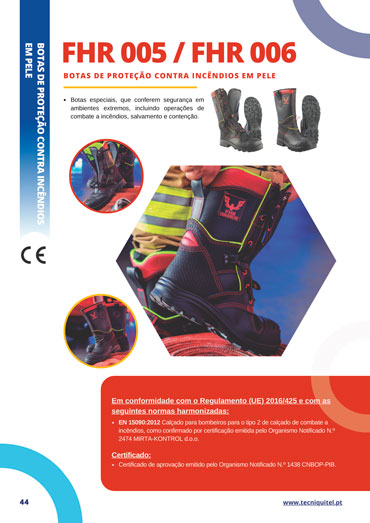 CARACTERÍSTICAS DAS BOTAS EM PELE CONTRA INCÊNDIOS FHR 005 / FHR 006