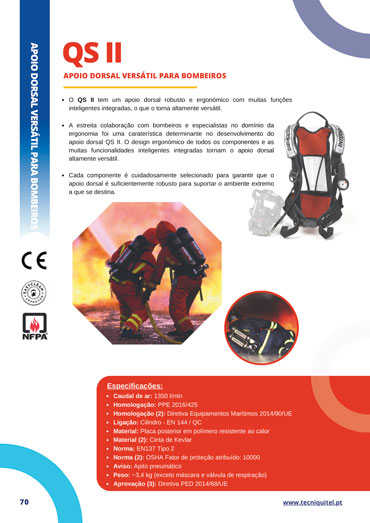 O arnês para bombeiros QS II está homologado pelo regulamento (EU) 2016/425 relativo aos EPIs.