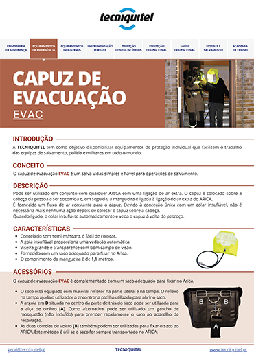 O Capuz de Evacuação EVAC funciona como um salva-vidas simples e fiável para operações de salvamento.