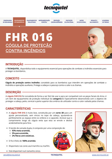 Cógula de proteção contra incêndios FHR 016 concebida para os bombeiros que intervêm em operações de combate a incêndios e operações auxiliares. Protege a cabeça e o pescoço contra o calor e as chamas.