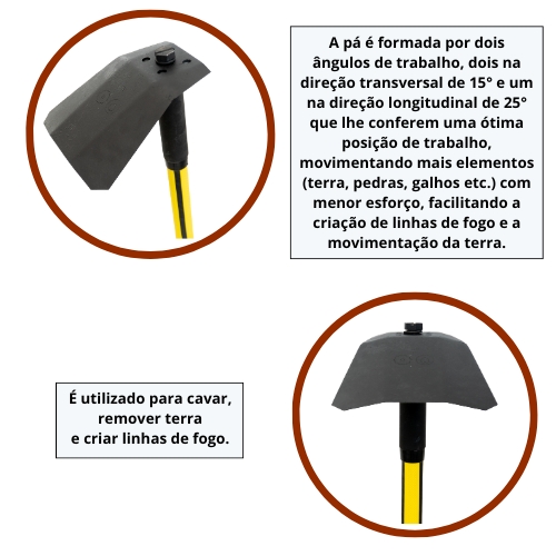 Projetada para escavação, remoção de solo e corte de pequenas raízes, possibilita a criação de linhas de fogo de forma prática.