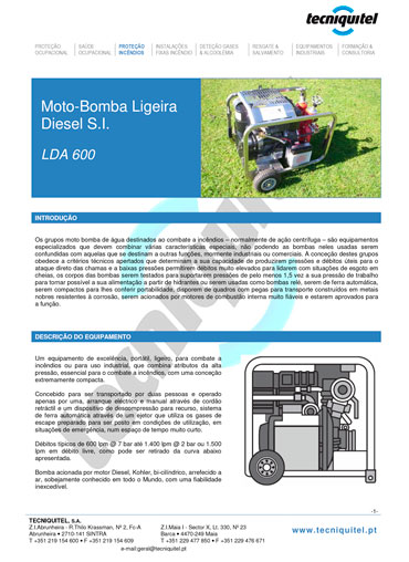 A motobomba LDA 600 é um equipamento de excelência, portátil, ligeiro, para combate a incêndios ou para uso industrial.