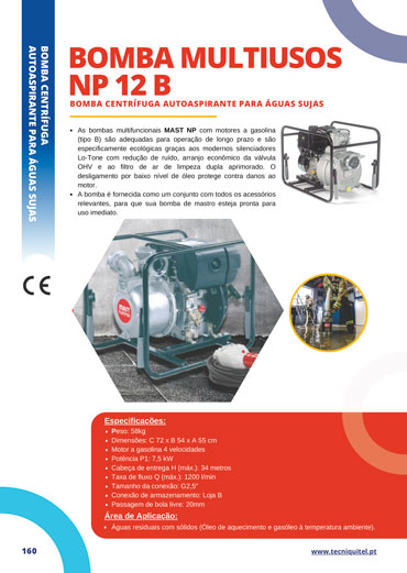 CARACTERÍSTICAS DA BOMBA MULTIUSOS NP 12 B