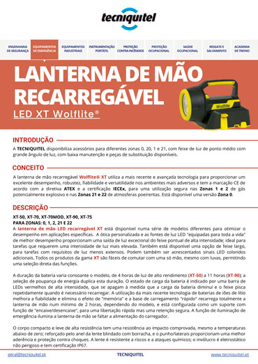 A lanterna de mão recarregável LED XT WOLFLITE® é projetada para garantir segurança, robustez e desempenho superior em ambientes exigentes.