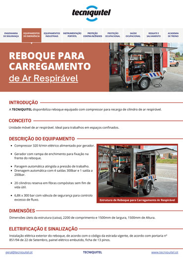 O Reboque para Carregamento de Ar Respirável é a solução ideal para operações em espaços confinados, garantindo segurança, mobilidade e autonomia.