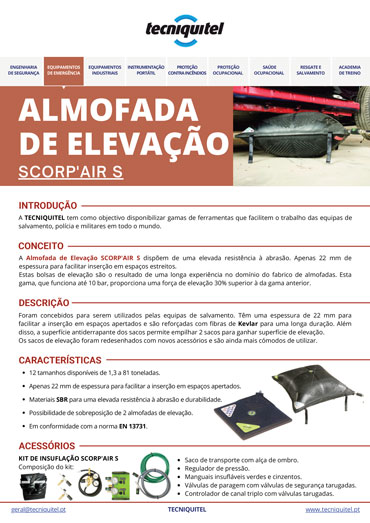 As almofadas de elevação SCORP’AIR S são fruto de uma experiência sólida na fabricação de equipamentos de alta performance para resgate.