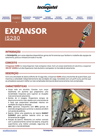 O Expansor iS290 destaca-se como o mais compacto e leve da sua categoria, oferecendo mobilidade e desempenho em operações de resgate exigentes.