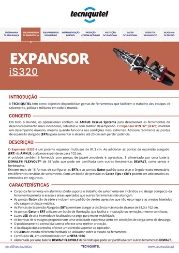 O Expansor iS320 é um potente expansor multiusos de 81,3 cm. Ao adicionar as pontas de expansão alargado (ERT) da AMKUS, o alcance expande-se para 102 cm.