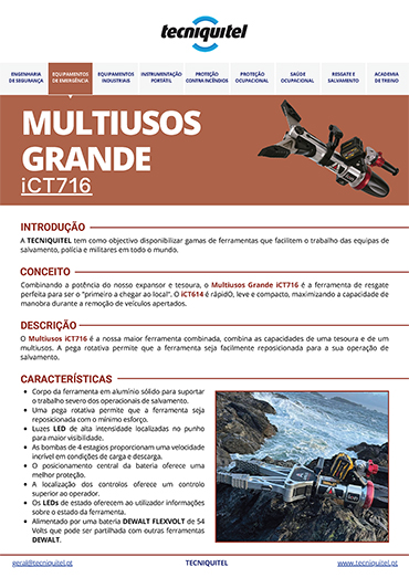 A Ferramenta Combinada iCT716 é um equipamento robusto e eficiente, projetado para operações de resgate exigentes.